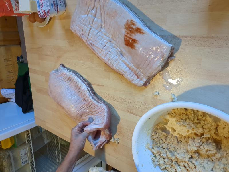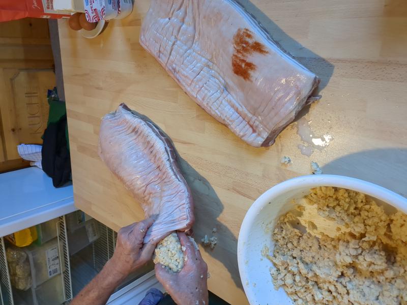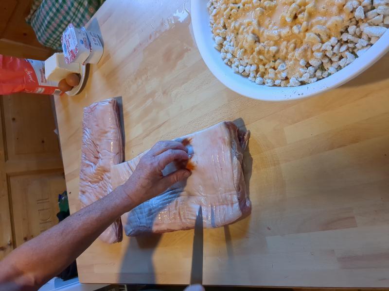 - Fill the pocket with Semmelknodle filling